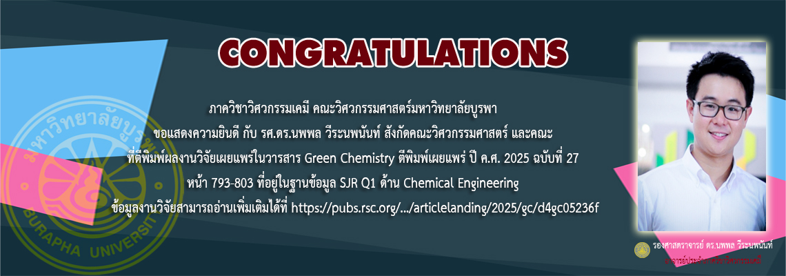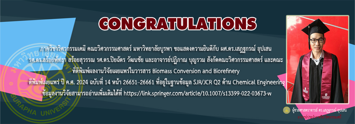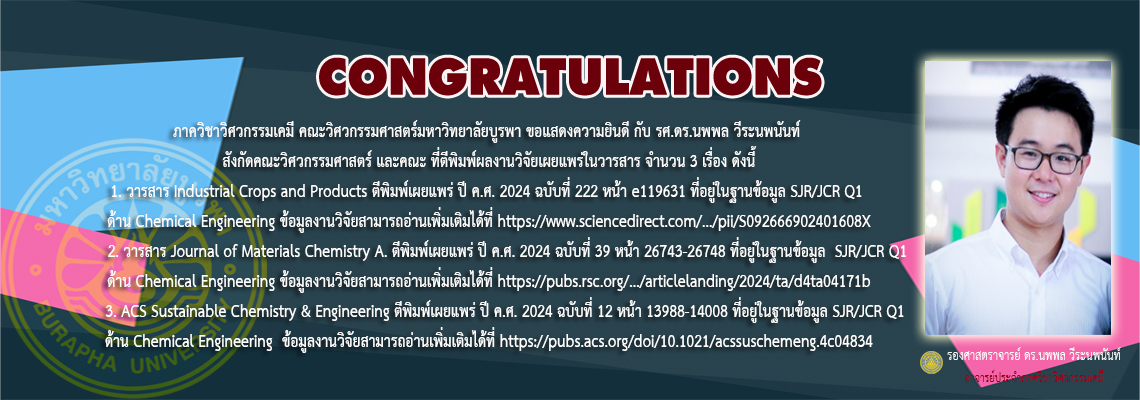 ขอเชิญผู้ที่สนใจศึกษาต่อในระดับปริญญาโท-ปริญญาเอก ในหลักสูตรวิศวกรรมศาสตรมหาบัณฑิตและหลักสูตรปรัชญาดุษฎีบัณฑิต (สาขาวิชาวิศวกรรมเคมี) โดยมีเนื้อหารายละเอียดของหลักสูตรดังเอกสารแนบ และรายละเอียดรายวิชาที่เปิดสอนในหลักสูตรสามารถดูได้จากhttps://tqf.buu....